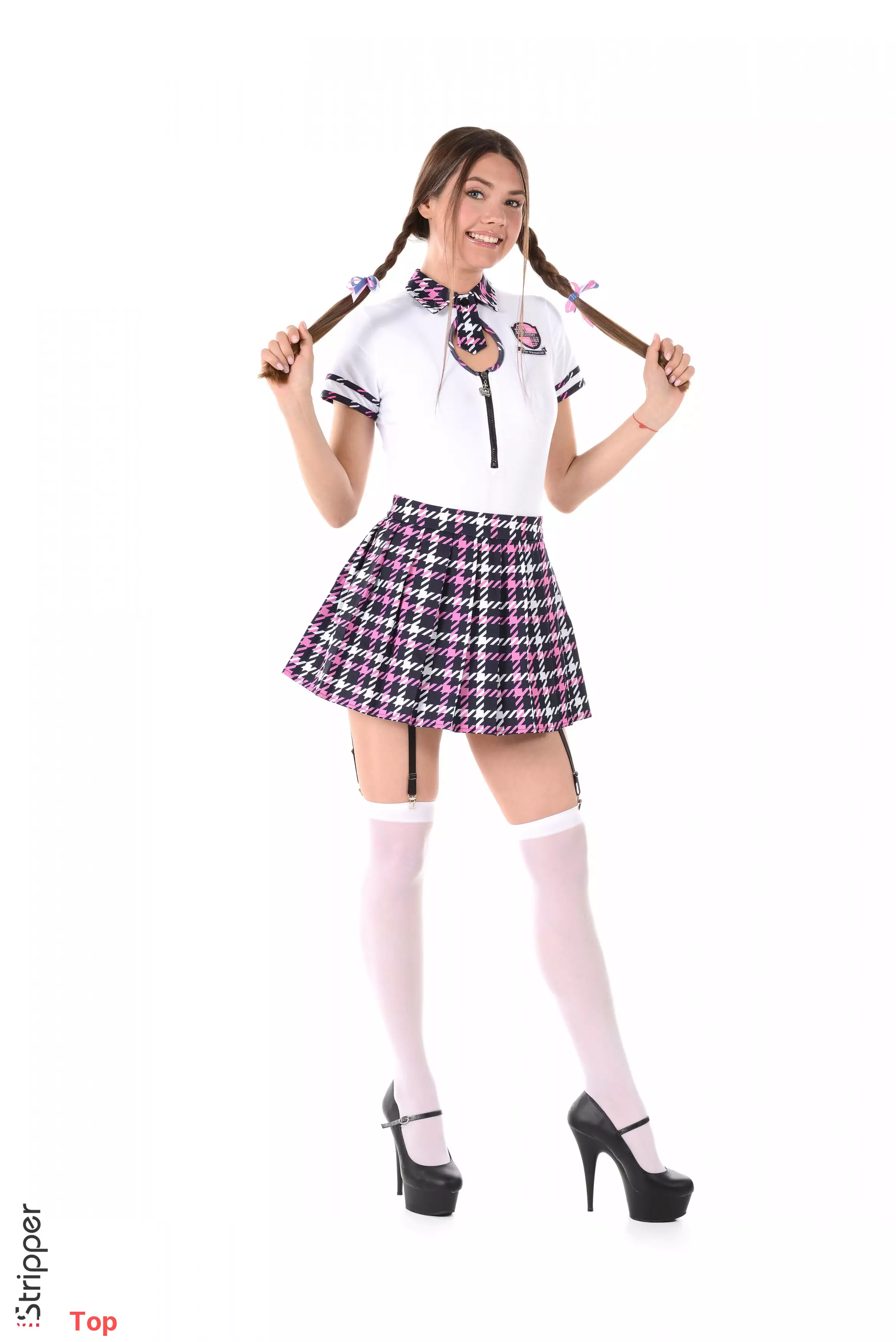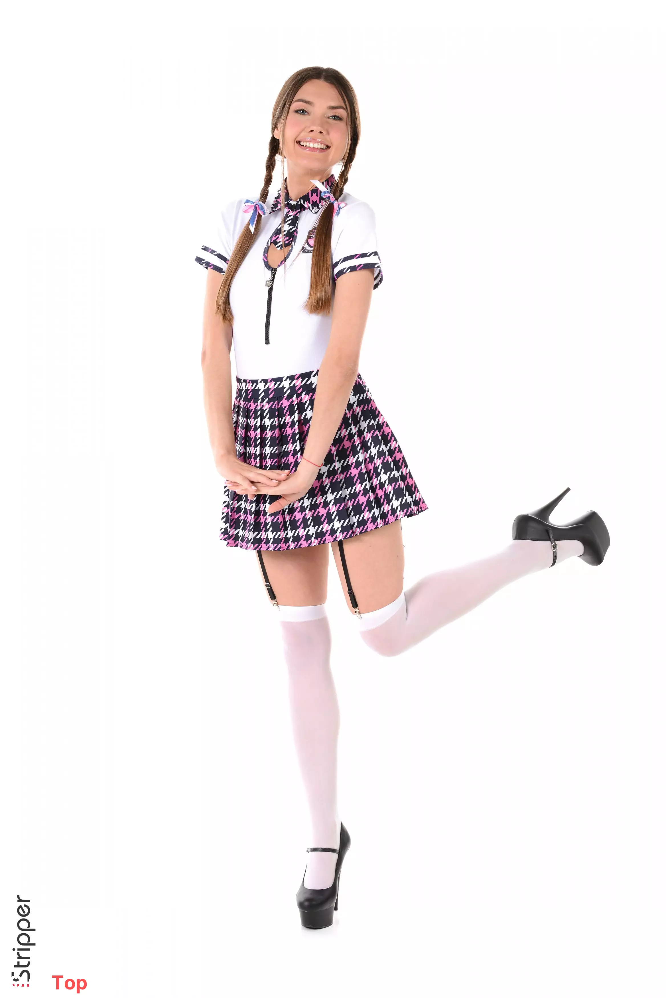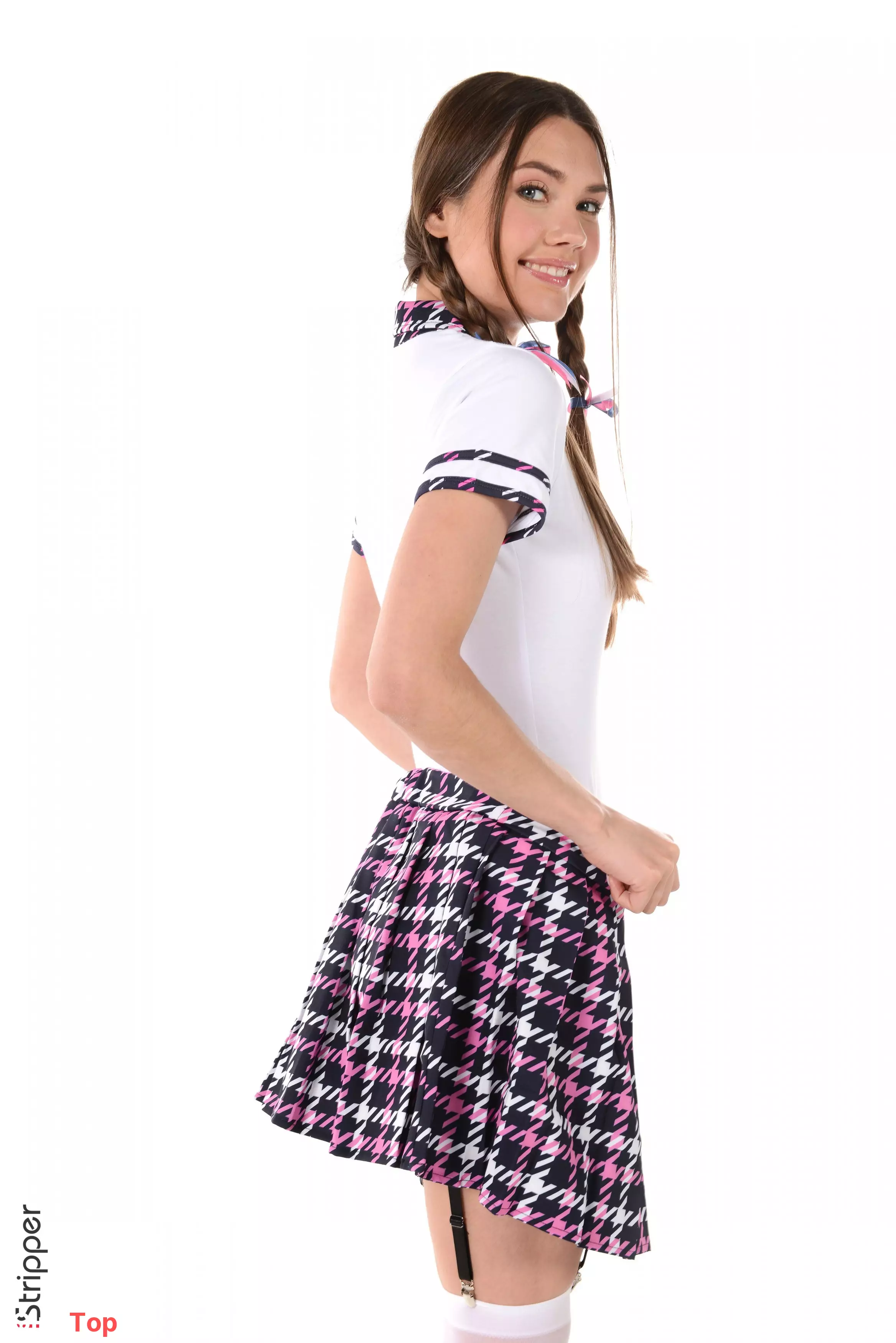 Улыбчивая студентка в модной мини-юбке — Georgia A